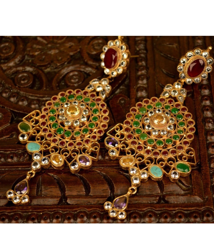 Add a royal touch to your ethnic look with these stunning Traditional Kundan Chandbali Earrings. Designed with intricate gold-plated craftsmanship and embellished with multicolor stones, these earrings reflect classic Indian heritage jewelry style.